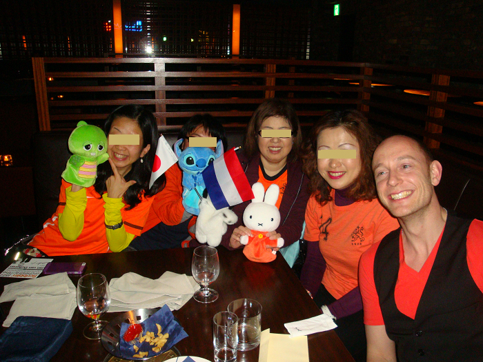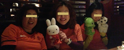 2010年のブルーノート東京ライブに続き、Rさんよりオレンジ指令が出て、メンバー全員オレンジTシャツ(サッカーオランダ代表ユニフォームなど)を着て会場に参上しました。加えて私は日本とオランダ国旗、そしてRさんはミッフィー、Aさんはワンコとガチャピン、Iさんはスティッチのマペットも持って参戦。ここまで揃えたら目立たないわけはありません。オレンジ軍団は2nd公演のボックスシートで大いに盛り上がり、ステージに居るキャンディも私たちに気付いて、「There's a Dutch club over