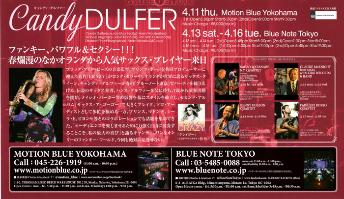 ヤンは私たち全員で撮影した写真をフェイスブックにアップされたのですが、そこには「Another great night at the Tokyo Blue Note. Hardcore Candy Dulfer fans