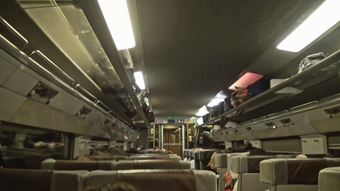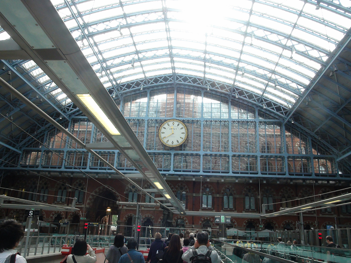 私たちはパリ北駅でバスを降りました。バスに積んだスーツケースをそれぞれ受け取り、各自ゴロゴロ転がしながら駅の荷物検査場へ。そうです、私たちは列車でパリを出国&イギリスへ出国するからちゃんと荷物検査を受けないといけないんです。スーツケースの検査&預け入れ手続きは現地添乗員さんが手続きしてくれるというのでお任せし、(ここで現地係員さんとはお別れ)私たちは自分たちの手荷物検査と出国手続き場へすすみました。 セキュリティチェックは空港と全く同じ。手荷物をベルトコンベアに乗せて、自分は金属類は外しゲートをくぐります。検査を過ぎると、出国検査場でパスポートを出し、そしてすぐにロンドンの入国審査を受けました。列車乗車中に国境を越えてしまうので、このパリで入国審査を済ませてしまうのですね・・・(驚)初めての経験でした。検査の方はすごく優しいまなざしの男性で、全然怖くなかったです。パスポートにスタンプをもらい、駅の構内へ移動しました。 少しトイレ休憩を取った後、私たちは添乗員さんからチケットを受け取り、列車ユーロスター2等席に乗車しました。ユーロスターはイタリアでも乗車したことがありますが、とても快適な高速列車です。パリを10時13分に出発し、11時28分にロンドンのセントパンクラス国際駅へ到着する予定となっていて約1時間半の旅です。初めてのドーバー海峡(英仏海峡トンネル)横断にわくわくしながら列車はスタートしました。ここまで来ると総勢15名程のツアーの皆さんもお互いに打ち解けて、皆さん仲良しになっています。連絡先などを交換しながら、いつしかの再会を誓うのでした。 列車の車窓からしばらくのどかなフランスの田園風景など牧歌的な風景が続いていましたが、約1時間後まっ暗に!!!そうです、いよいよあのドーバー海峡の地下トンネルを通過中ということで、しばらく、真っ暗な風景が続きました。そして地上に出た時にはイギリス。初めてのイギリスに入国しました。