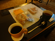| ベネチアン最後の朝、朝食は昨夜のディナーの残りのピザなど・・・ |