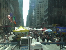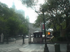 ◇ブロードウェイ劇場街〜タイムズスクエア〜グリニッジビレッジ、ソーホー等 まずは車内からブロードウェイ劇場街〜タイムズスクエアを車窓から鑑賞。このあたりは昨夜見ていたので、再びという感じでした。有名ブランドショップが並ぶ長い長い「世界一高価な通り」である5番街を通りました。日本で言えば東京の銀座みたいなところなんですが、本当にものすごいゴージャスな世界的ブランドショップの数々にとっても圧倒されてしまいました。(私はあまりブランド志向はないのですが・・・苦笑)そしてバスはエンパイアステートビルディングの側を通過し、チェルシーの街並みを通り、ロウアーマンハッタン方面へ進みます。グラマシーのアイロン形のビル"フラットアイアンビル"付近で、なんの映画かドラマかはわからないのですが、ロケをしているシーンを見かけました。役者さんは迷彩柄の軍服を着ていました。ニューヨークは映画やドラマ撮影などにとっても協力的で、むしろ進んで協力して、観光地としてのイメージ向上に努力しているのだそうです。証拠に「スパイダーマン」「バニラ・スカイ」等々舞台になった映画は数知れず。芸術家の町グリニッジビレッジへ。古さと新しさが交差したレトロな街並みが本当にオシャレで、落ち着いていてステキなんですよね。ほっとできて、こんなところに住みたい!!!って思うようなところです。いいなあ。うっとりしながら通過しました。1960年代をしのばせるマクドゥガルストリートやゲイ人権運動発祥の地であるストーンウォール跡地など見所沢山。そしてソーホー地区を通過。チャイナタウン、トライベッカを通り過ぎ、そしてバスは世界の金融の中心であるウォール街のニューヨーク証券取引所、トリニティ教会を過ぎ、ニューヨーク市庁舎、国立アメリカンインディアン博物館などを見ながら、本日のメインイベントの自由の女神鑑賞の出発地であるバッテリーパークに到着しました。 (余談ですが、次の日9月15日に米証券会社大手リーマン・ブラザーズが経営破綻したというニュースが大きく報道されました。日本に帰国するまで私は知らなかったのですが。。。。)