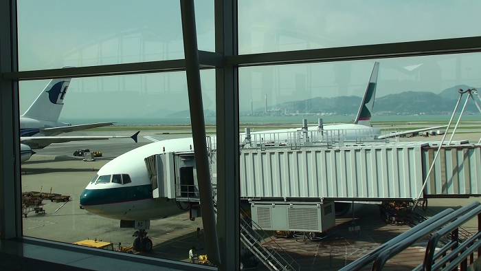 チャンギ国際空港に到着後、税金の払い戻しの手続きを済ませて、キャセイパシフィック航空のチェックインカウンターに並びました。搭乗するのは、9時55分発香港行きCX736便です。ここで今日の全行程分をチェックイン出来たのですが、翼の無い窓側の席ということでリクエストしましたが、香港行きCX736便は満席につき、窓側が取れないとのこと。さすがに週末の搭乗客は多いんだなあと実感しました。荷物を預けて、ガイドさんとは出国カウンター前で「ありがとうございました!!!!とお別れしました。よくよく考えたらセキュリテイチェックがないなあと不思議に思いながら搭乗口方面へ。免税店が立ち並ぶ中、両替コーナーを見つけたので、ここでシンガポールドルを日本円に換金しました。その後搭乗口D44番へへ向かいましたが、びっくりしたことに、搭乗口にセキュリティチェックがあることを発見!!!!これ驚きです〜〜〜ビックリしました(-_-;)9時半頃搭乗が開始されて、飛行機に乗り込みました。