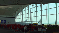 香港に到着し、トランスファーの表示を見ながら、乗り継ぎ場所へ向かいます。行きの経験が生きたのか、今回はとってもスムーズ。荷物検査とセキュリティチェックを受けて、今度は62番搭乗口へ向かいます。私たちの乗る飛行機は14時55分発台湾経由福岡行きCX510便です。途中トラムに乗ったりしながら、搭乗口に到着しました。到着したころにはすでに搭乗がスタートしていて、お買い物やウインドーショッピングをする時間は全くなしです(苦笑)なので、名残惜しい気持ちですぐにj飛行機に搭乗しました。飛行機は定刻の14時55分頃経由地の台北に向けて離陸しました。約1時間半の飛行ですが、早起きと疲れですっかり眠りこけてしまい、あっという間の16時35分頃台北に到着しました。